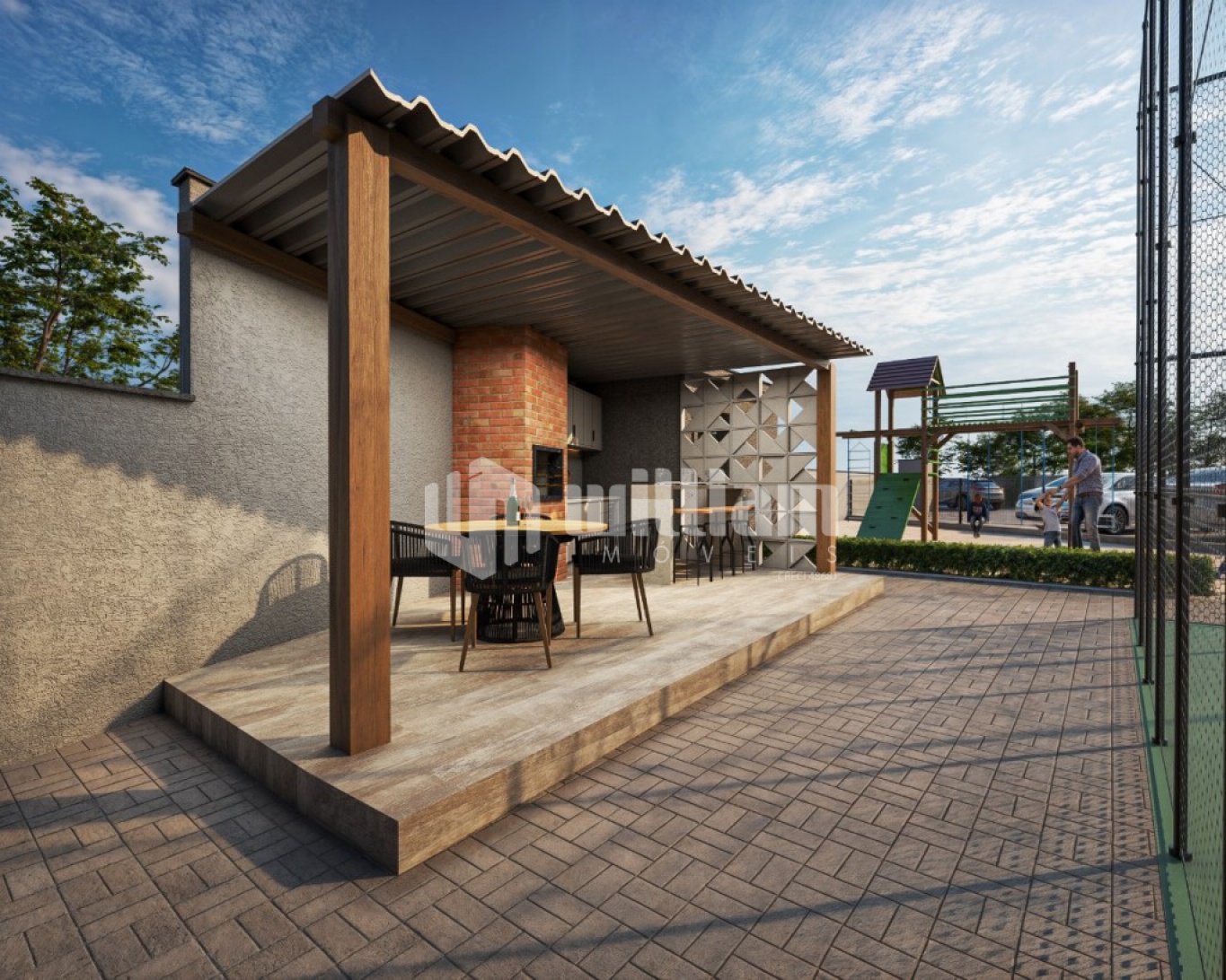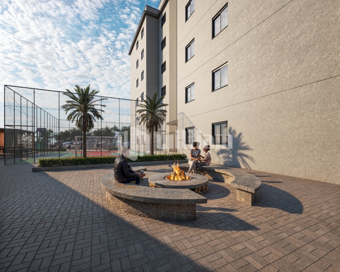 O condomínio oferece elevador, quadra poliesportiva, fireplace, playground, e, área de festas. O condomínio ainda possuí uma área verde de aproximadamente 1,000 m².