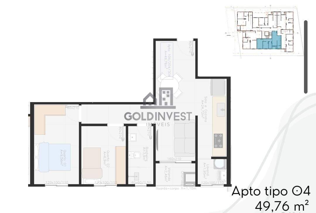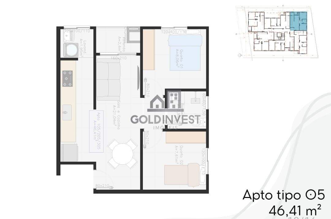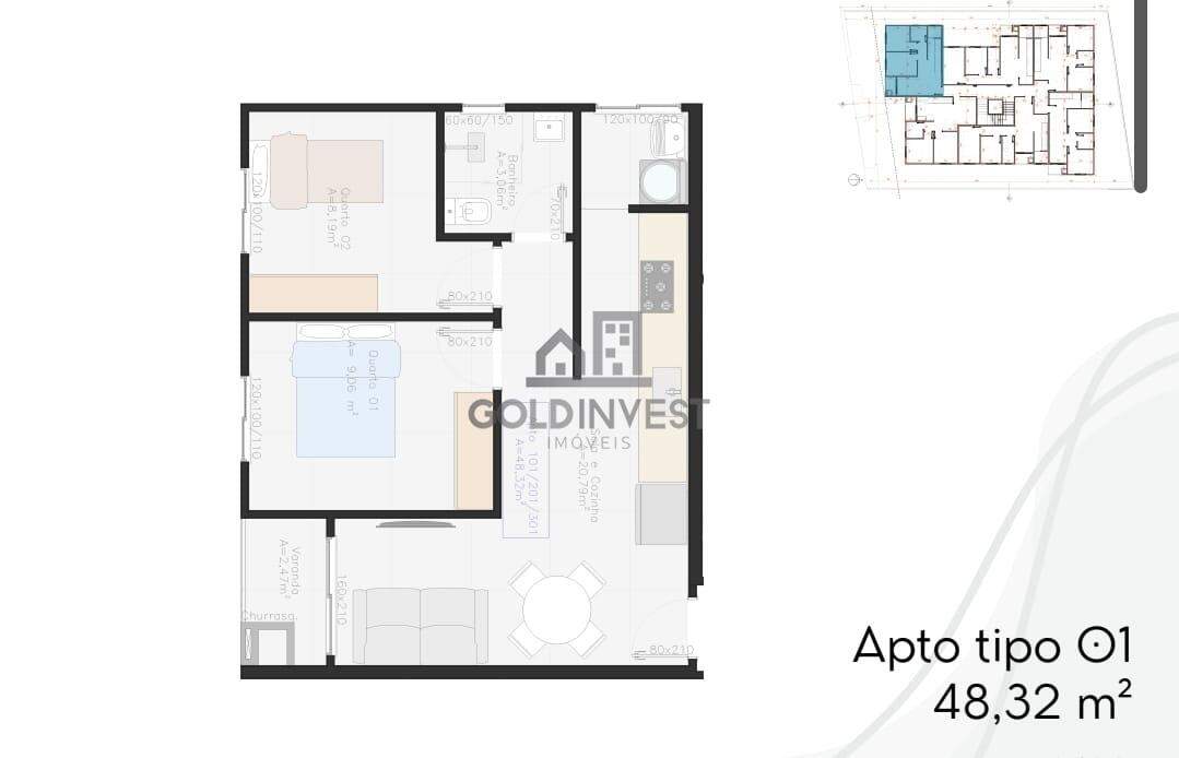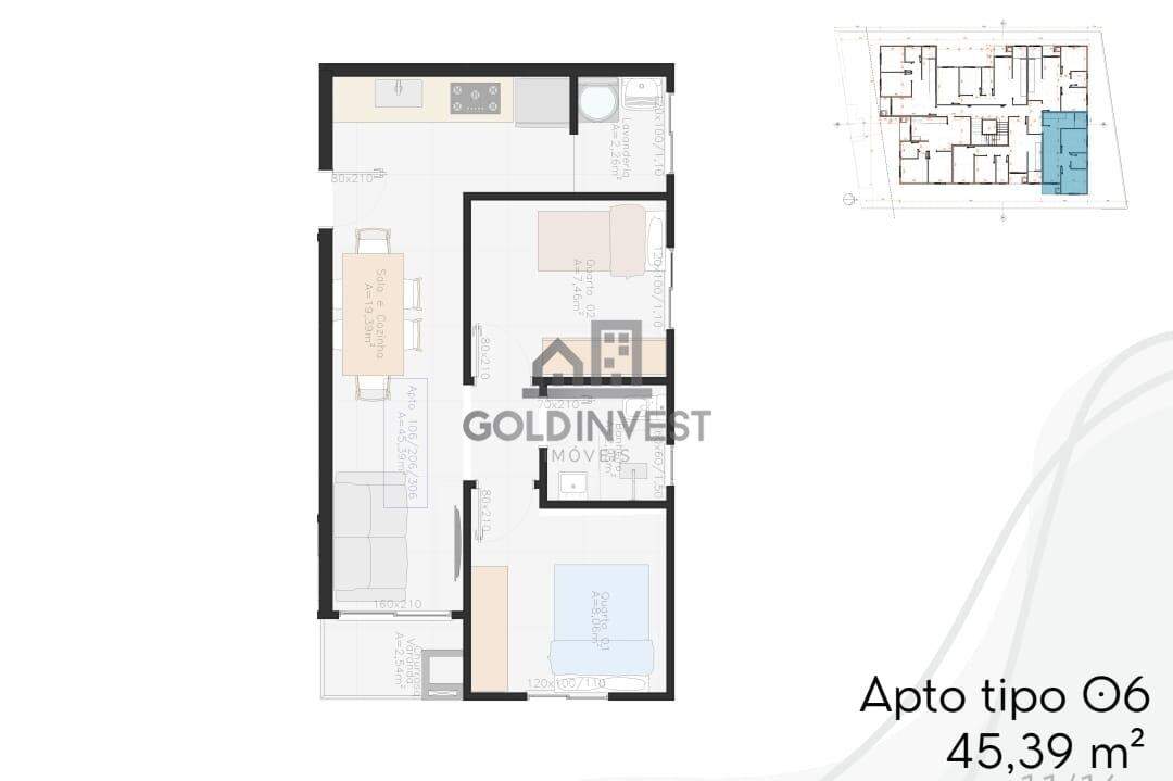 Apartamento de 2 quartos, 45m² no bairro Cedrinho, em Brusque
