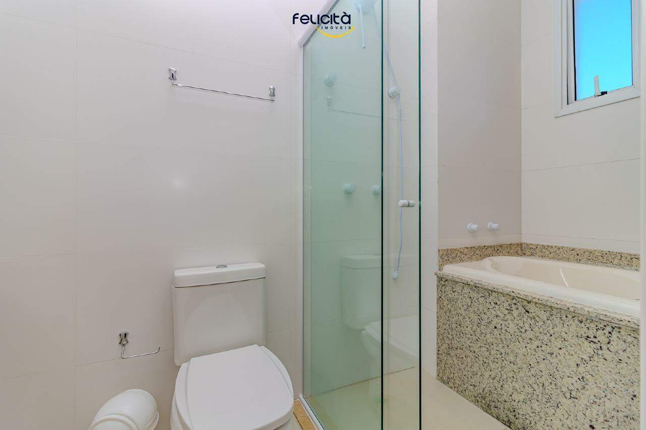 As três suítes são ideais para o descanso de toda a família, especialmente a suíte master com banheira, que adiciona ainda mais conforto.