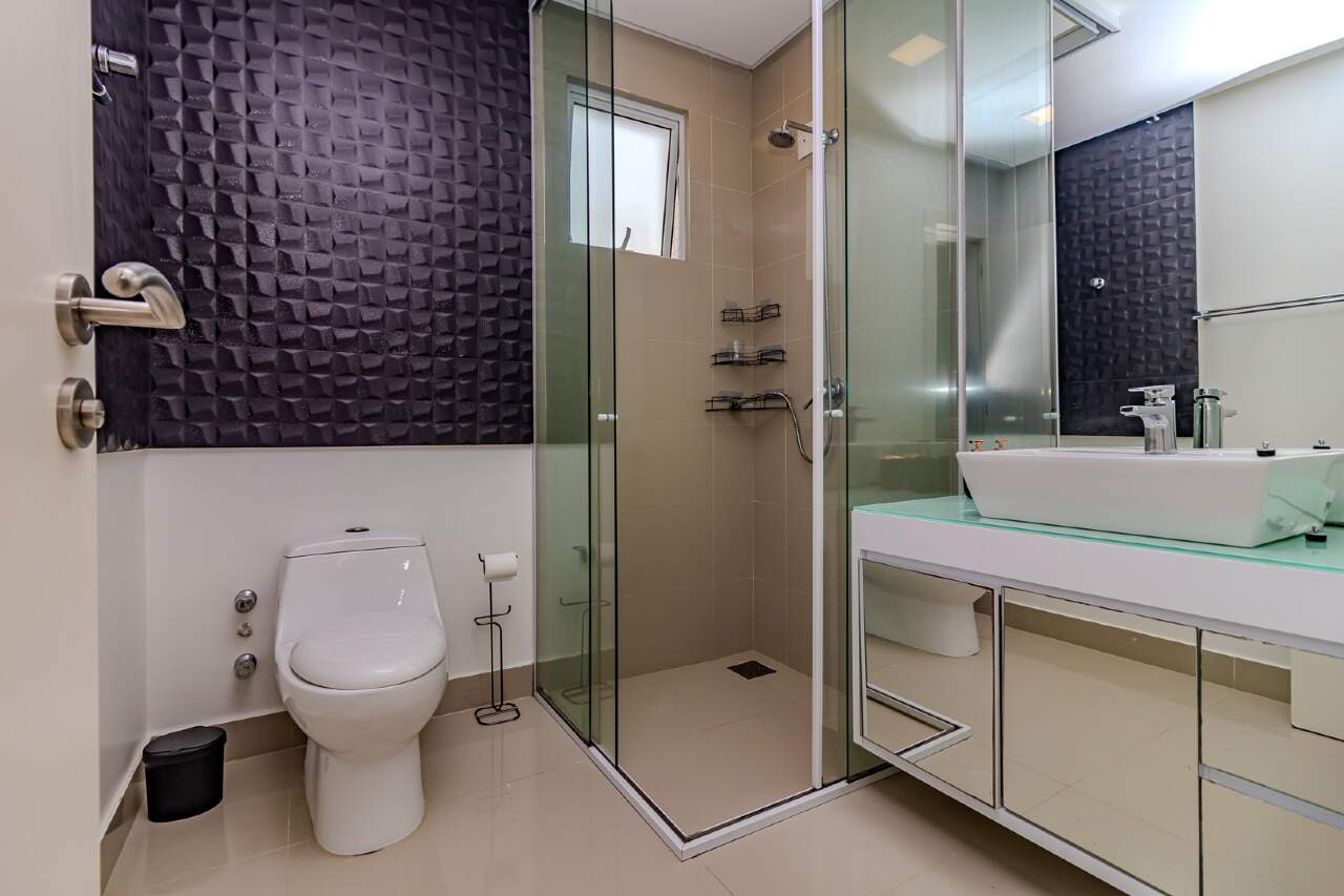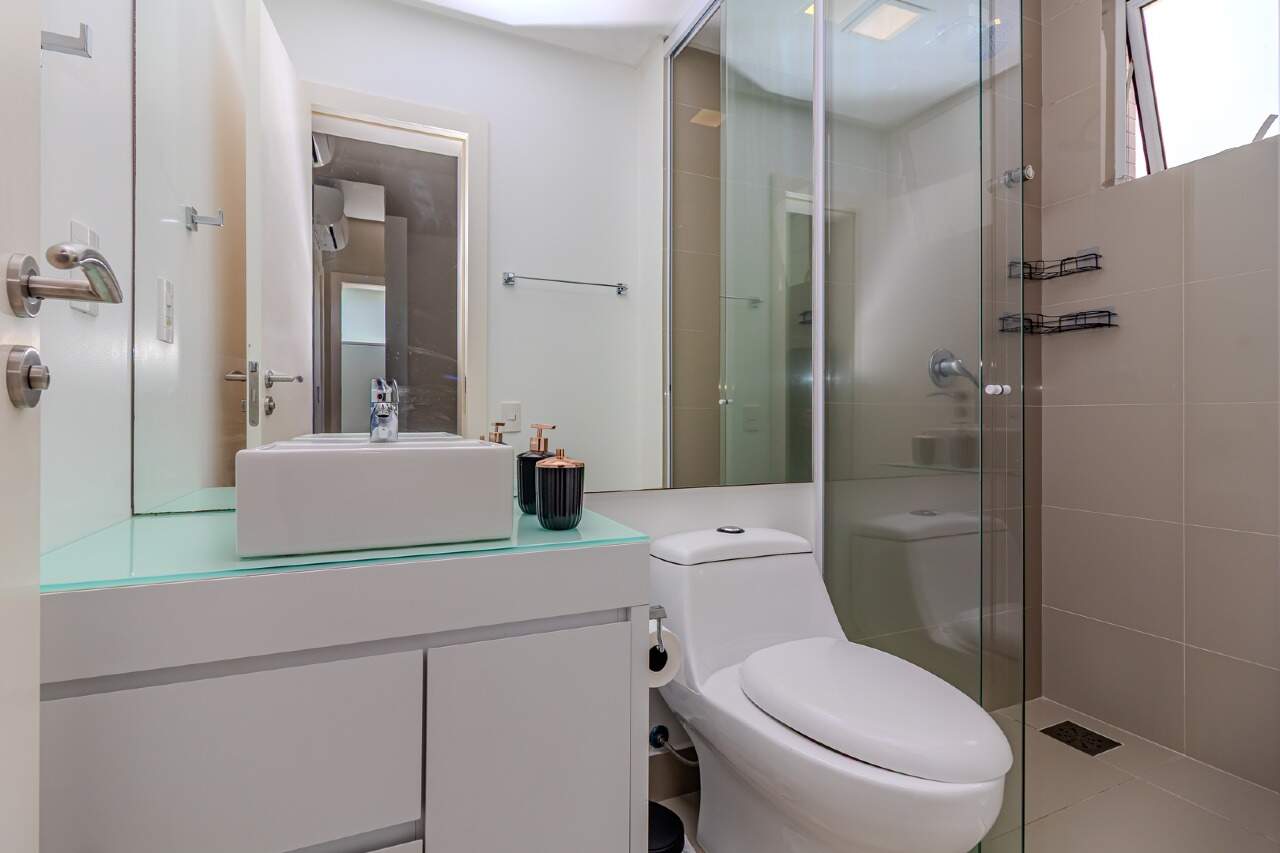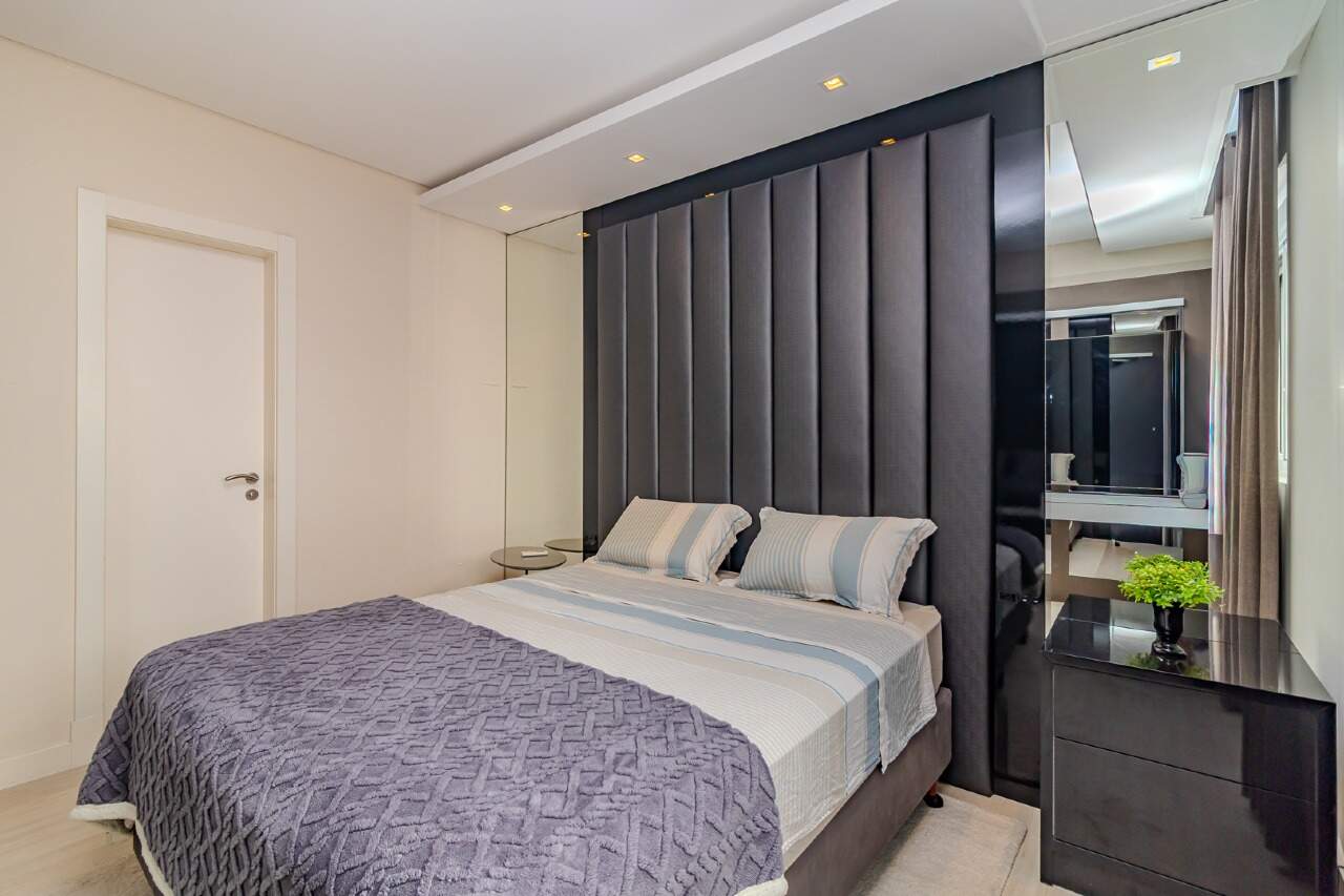Os acabamentos de alto padrão, como porcelanato 80x80, portas laqueadas e rebaixamento em gesso em todo o apartamento, elevam a estética e o requinte do imóvel.