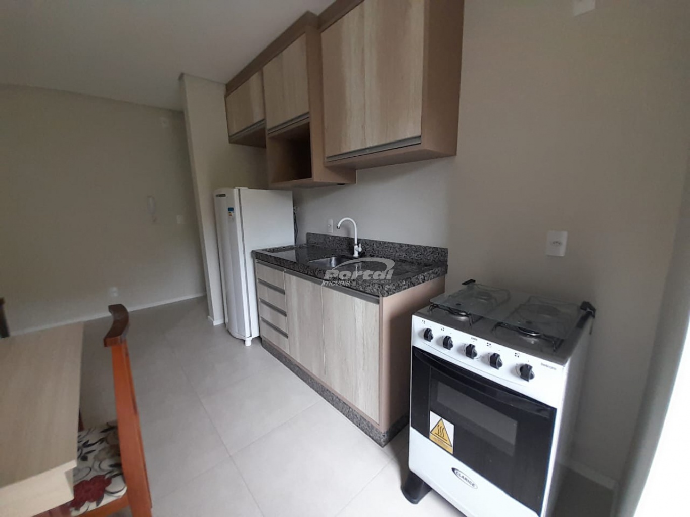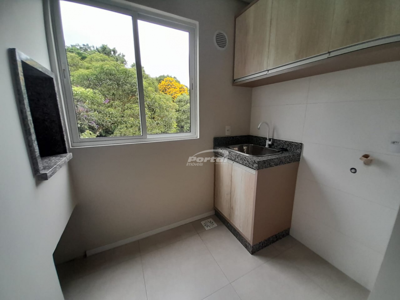 Imóvel com aproximadamente 38m², contendo 01 dormitório, sala, cozinha, banheiro, área de serviço, churrasqueira e 02 vagas de garagem (gaveta).