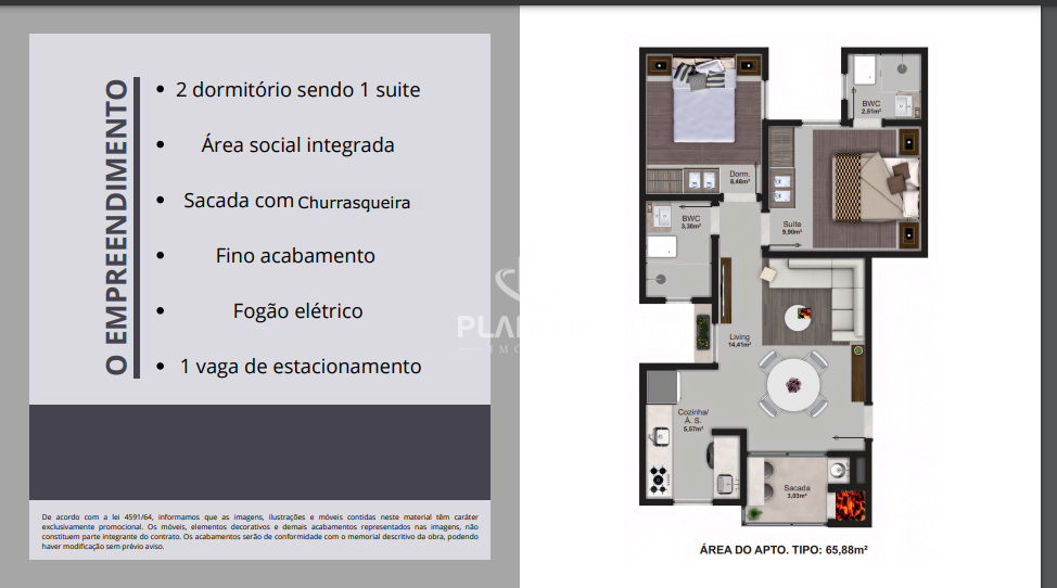 Apartamento de 2 quartos, 65m² no bairro Poço Fundo, em Brusque