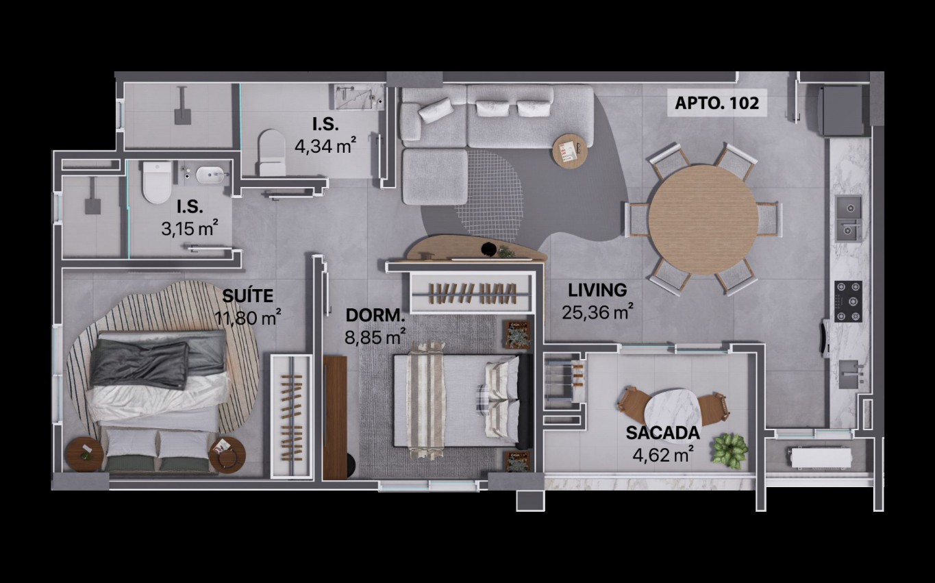 1 suíte + 1 dormitório