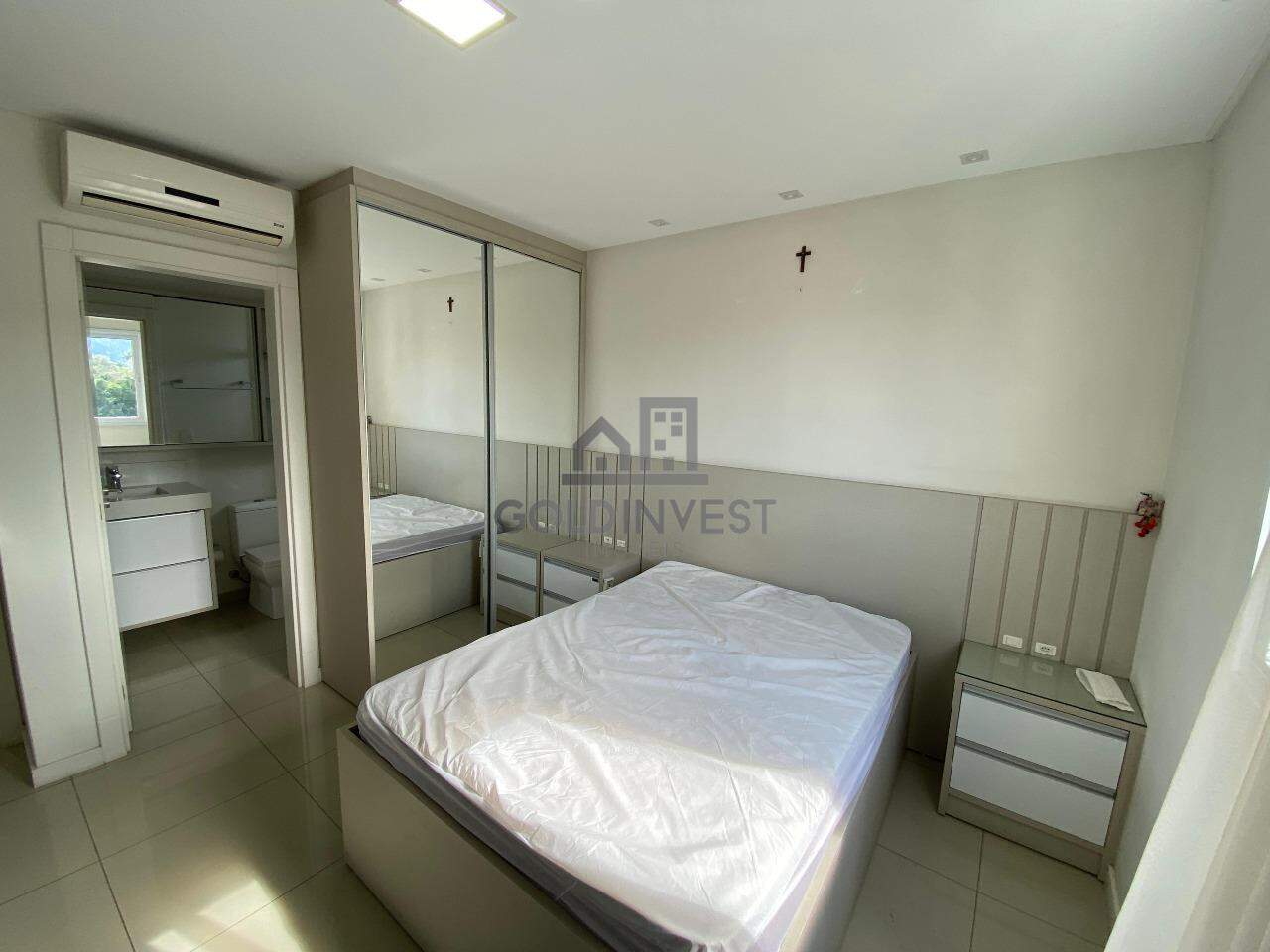Esse apartamento mobiliado possui 2 dormitórios sendo 1 suíte, sala de estar e jantar com churrasqueira integrada, cozinha com móveis sob medida, 1 banheiro social, lavanderia, ar-condicionado em todos os cómodos e 2 vaga de garagem.