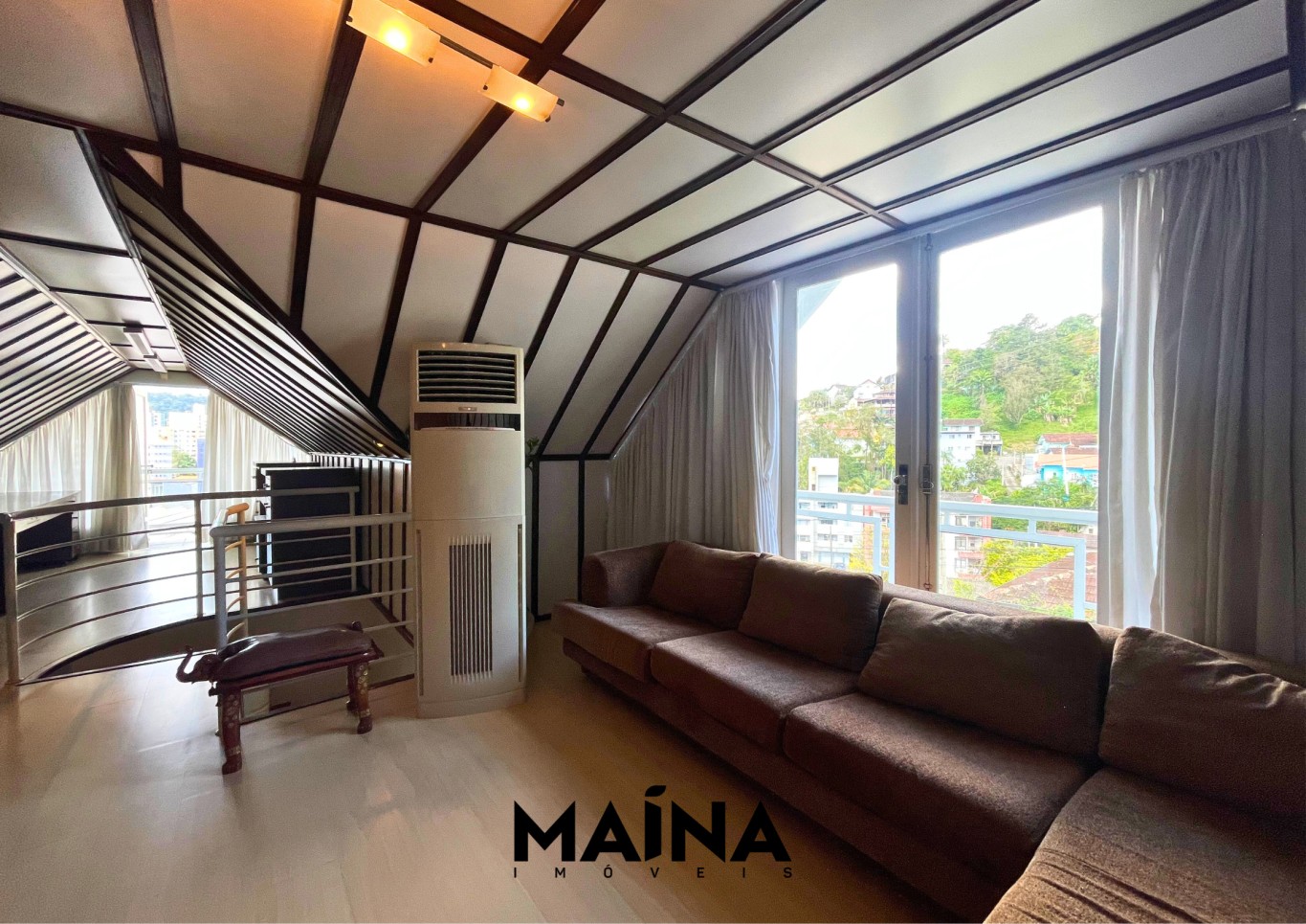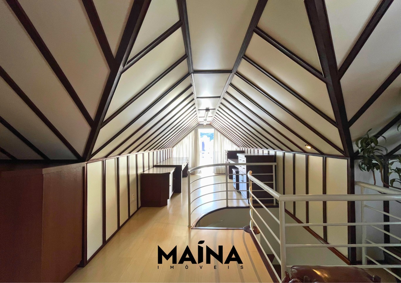 - Suíte principal no andar superior, com closet, home office, sala de TV e sacada, para trabalhar ou relaxar com conforto.