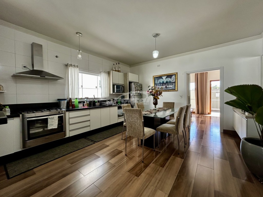 Imóvel com aproximadamente 165m² de área construída e 366m² de terreno, contendo 03 dormitórios sendo 01 suíte, ampla sala de estar, cozinha e sala de jantar conjugadas e integrada com churrasqueira, banheiro social, lavabo, área de serviço, amplo quintal nos fundos e 02 vagas de garagem coberta.