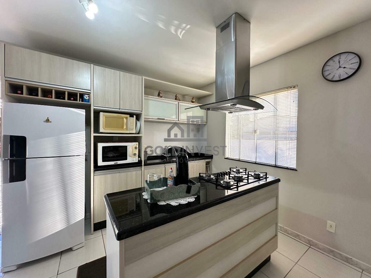 A casa fica com móveis sob medida na cozinha e suíte.