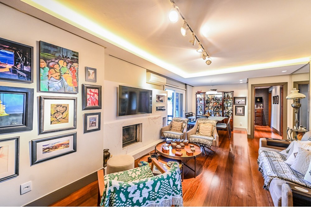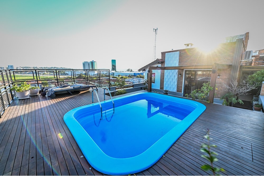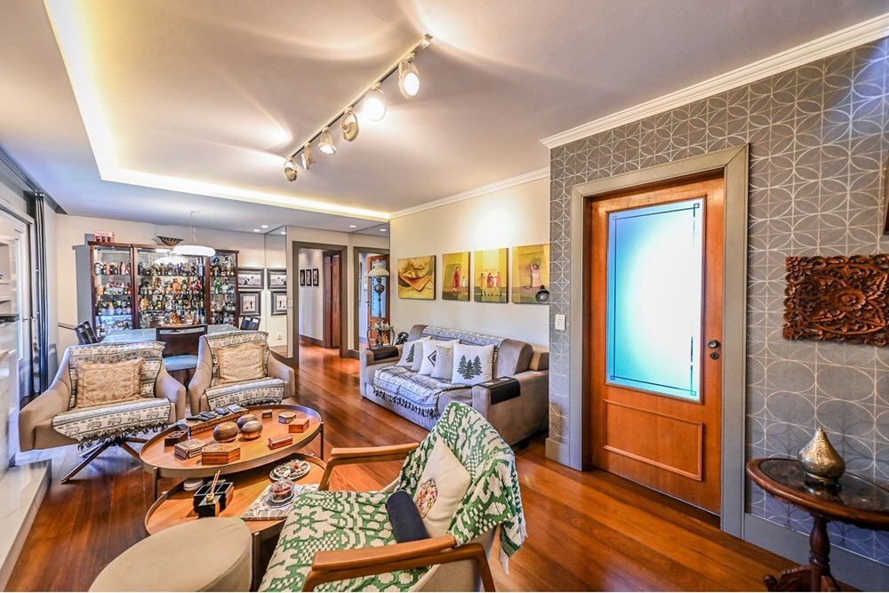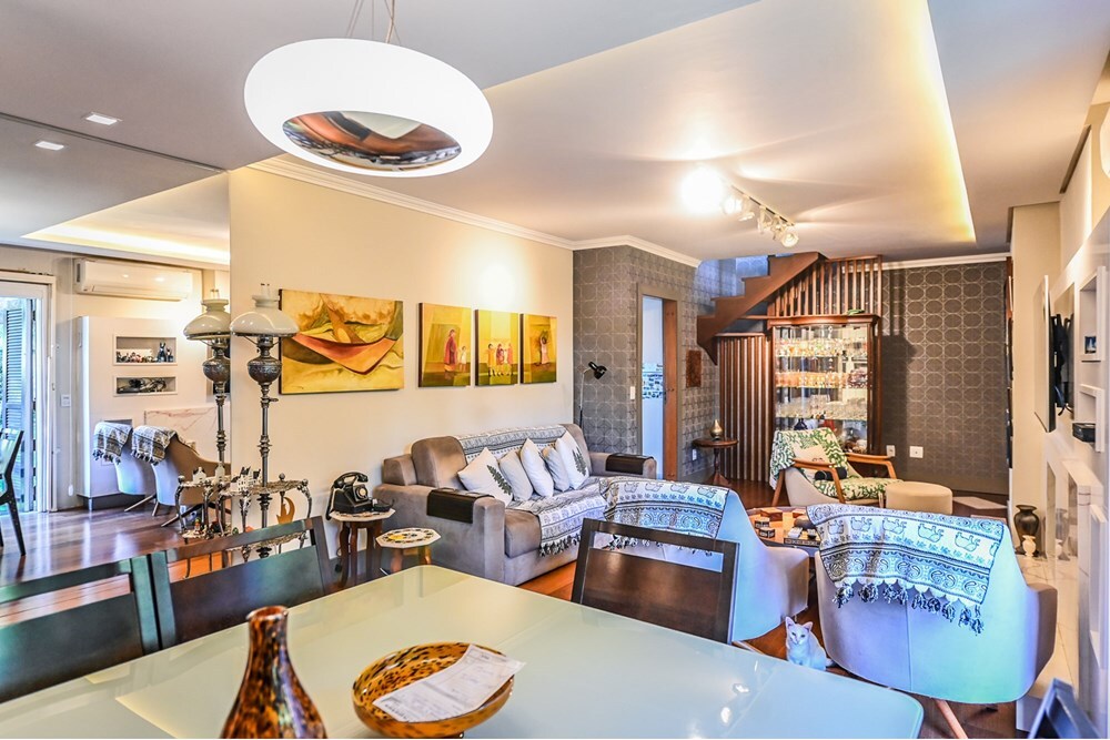 Cobertura de 234,17 m² de área privativa, semi mobiliada com armários planejados de ótima qualidade, com 4 dormitórios, sendo 2 suíte uma com closet, banheiro social, cozinha ampla com armários planejados, área de serviço separada, água quente com alta pressão, amplo living para 3 ambientes com sacada e lavabo. Piso superior escritório, banheiro social, área de convivência com churrasqueira e cozinha, lareira, terraço amplo aberto e deck com piscina aquecida com 2 motores novos. Boxes A e 2 Totalmente reformado inclusive hidráulica e elétrica em 2020. Vista definida do Rio Guaíba. Prédio com interfone, sem elevador. Aceita FGTS e financiamento. Preço e disponibilidade do imóvel sujeitos a alteração sem aviso prévio.