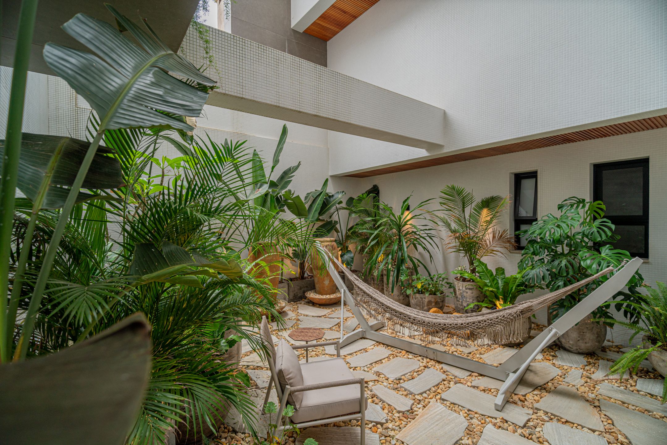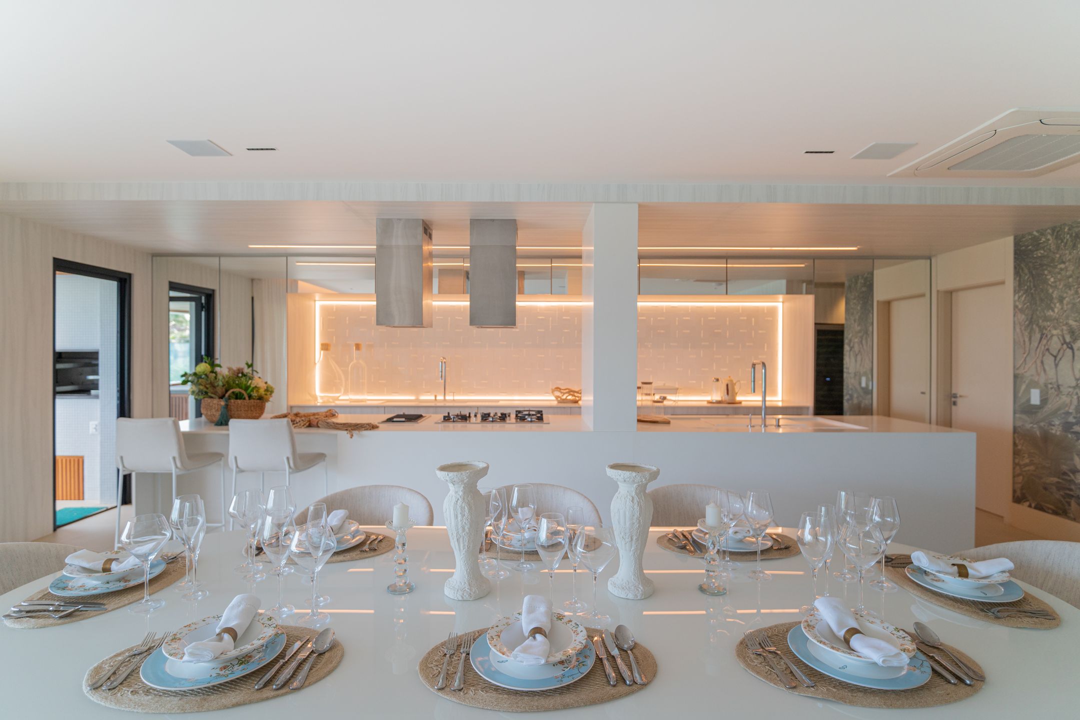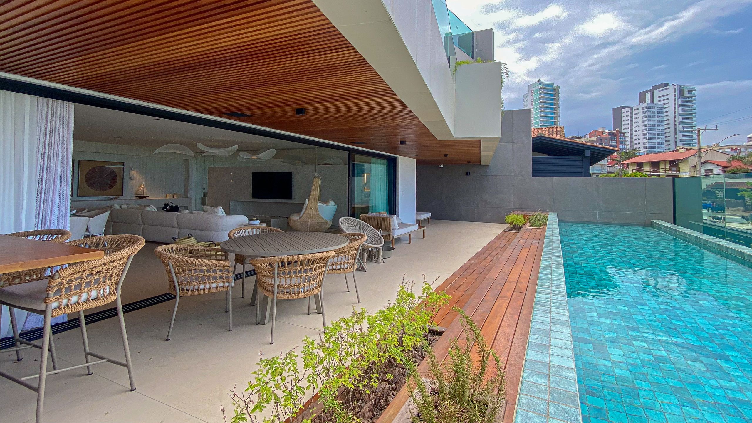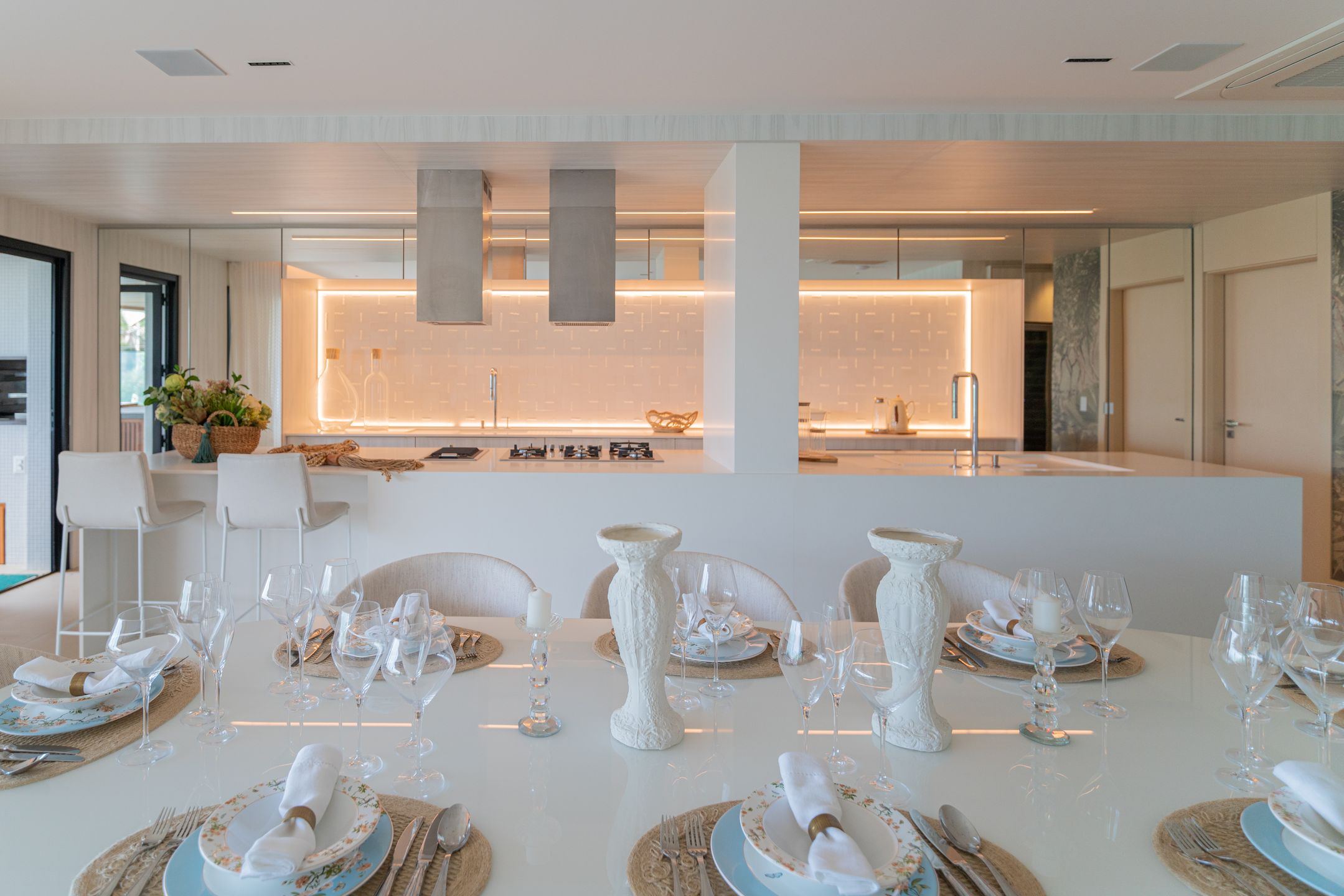 Destaque para o box americano para até 4 veículos, garagem Sem Parar, chopeira com torre Naja e torneira belga, além de jardim de inverno e área externa privativa.