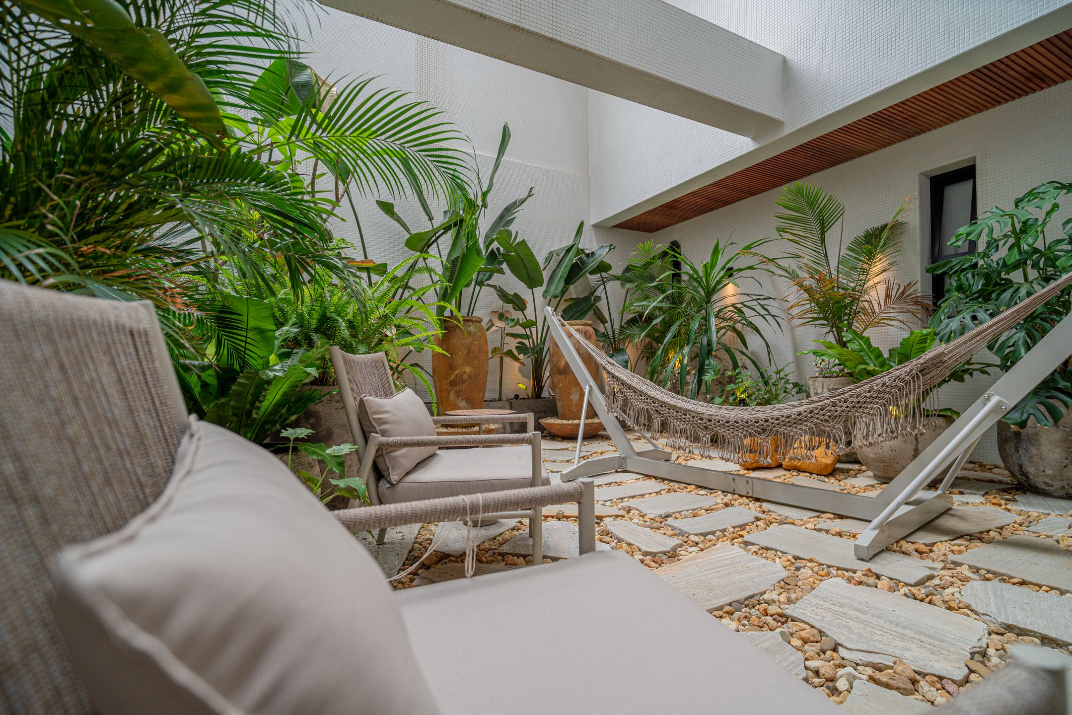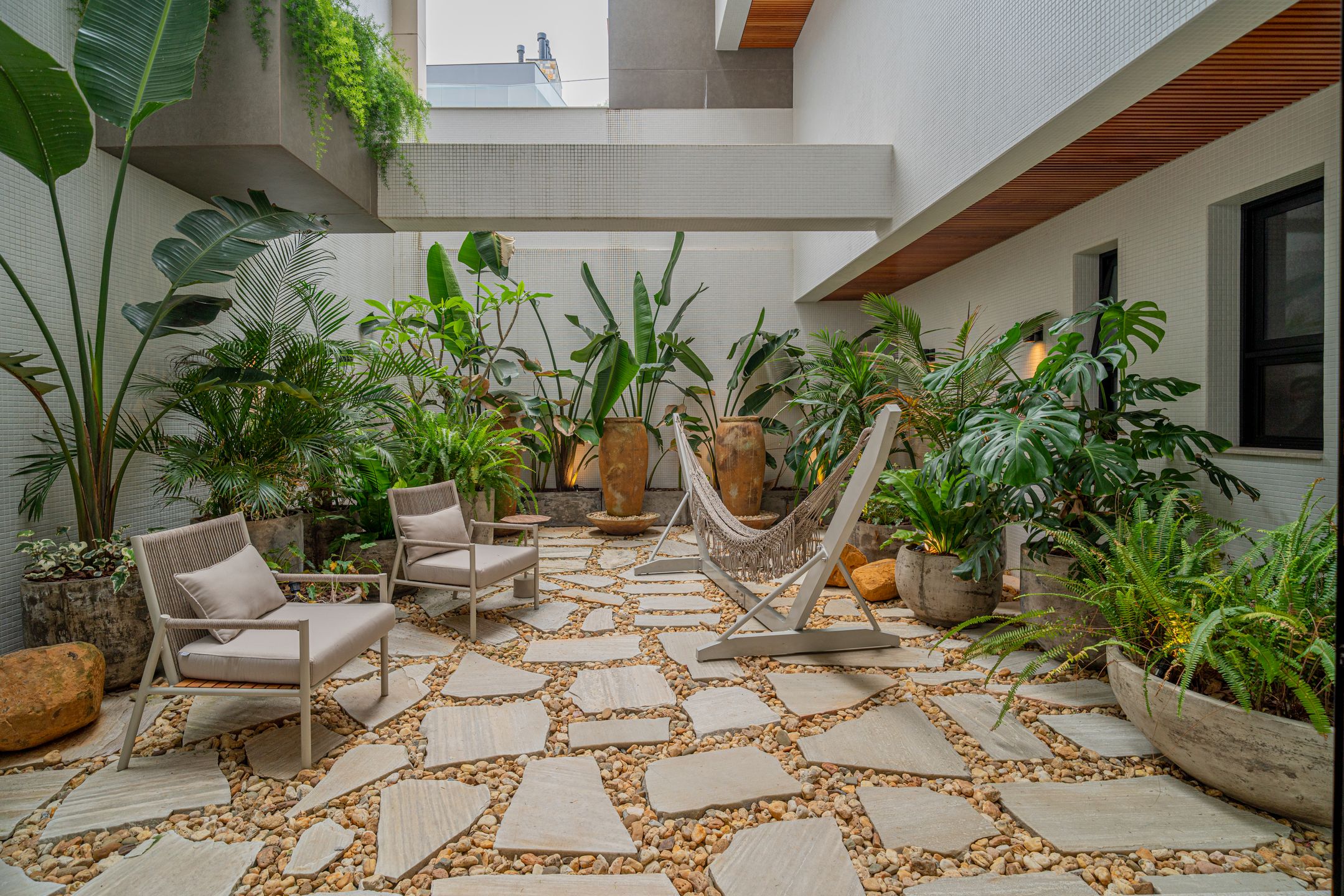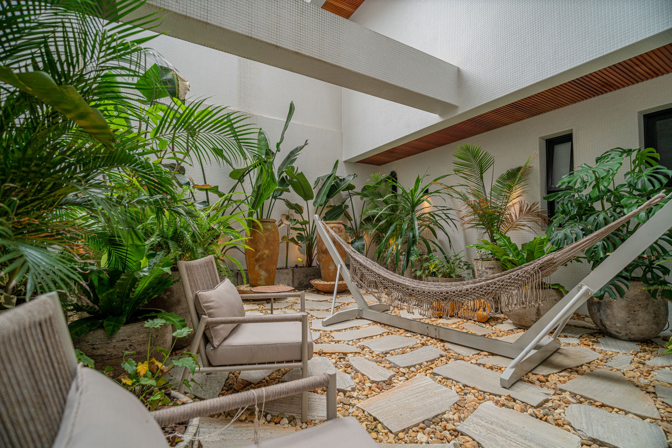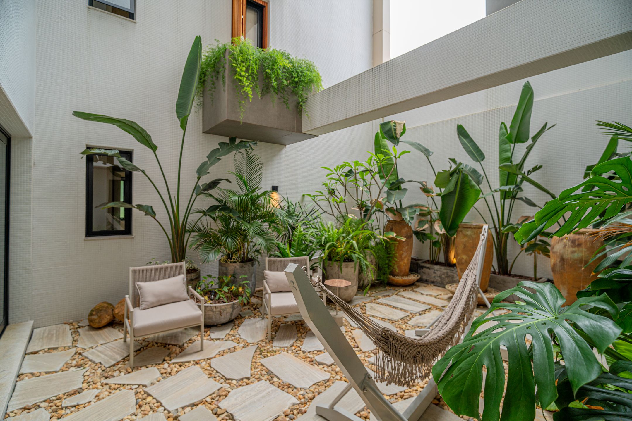 Destaque para o box americano para até 4 veículos, garagem Sem Parar, chopeira com torre Naja e torneira belga, além de jardim de inverno e área externa privativa.