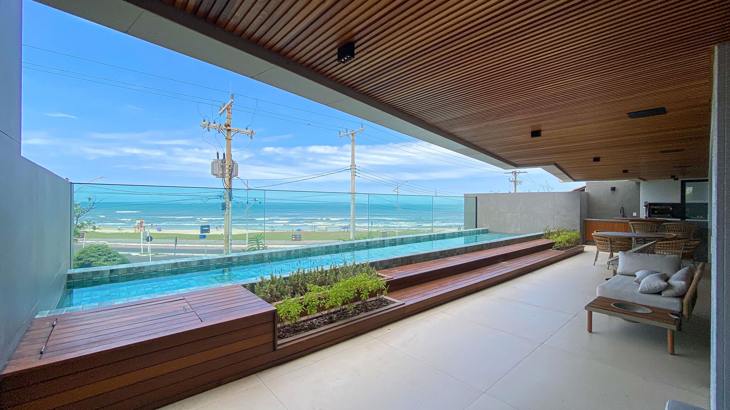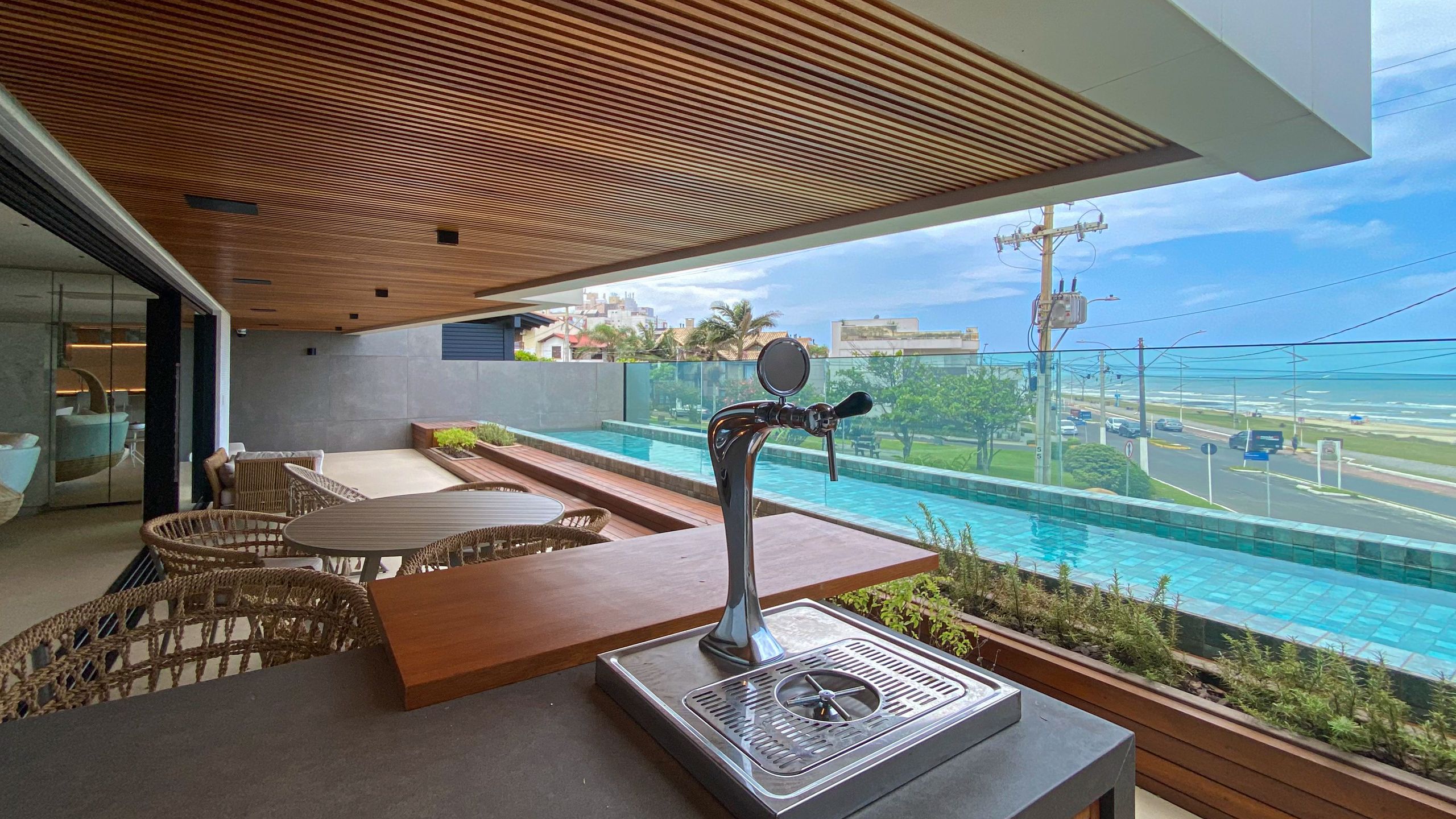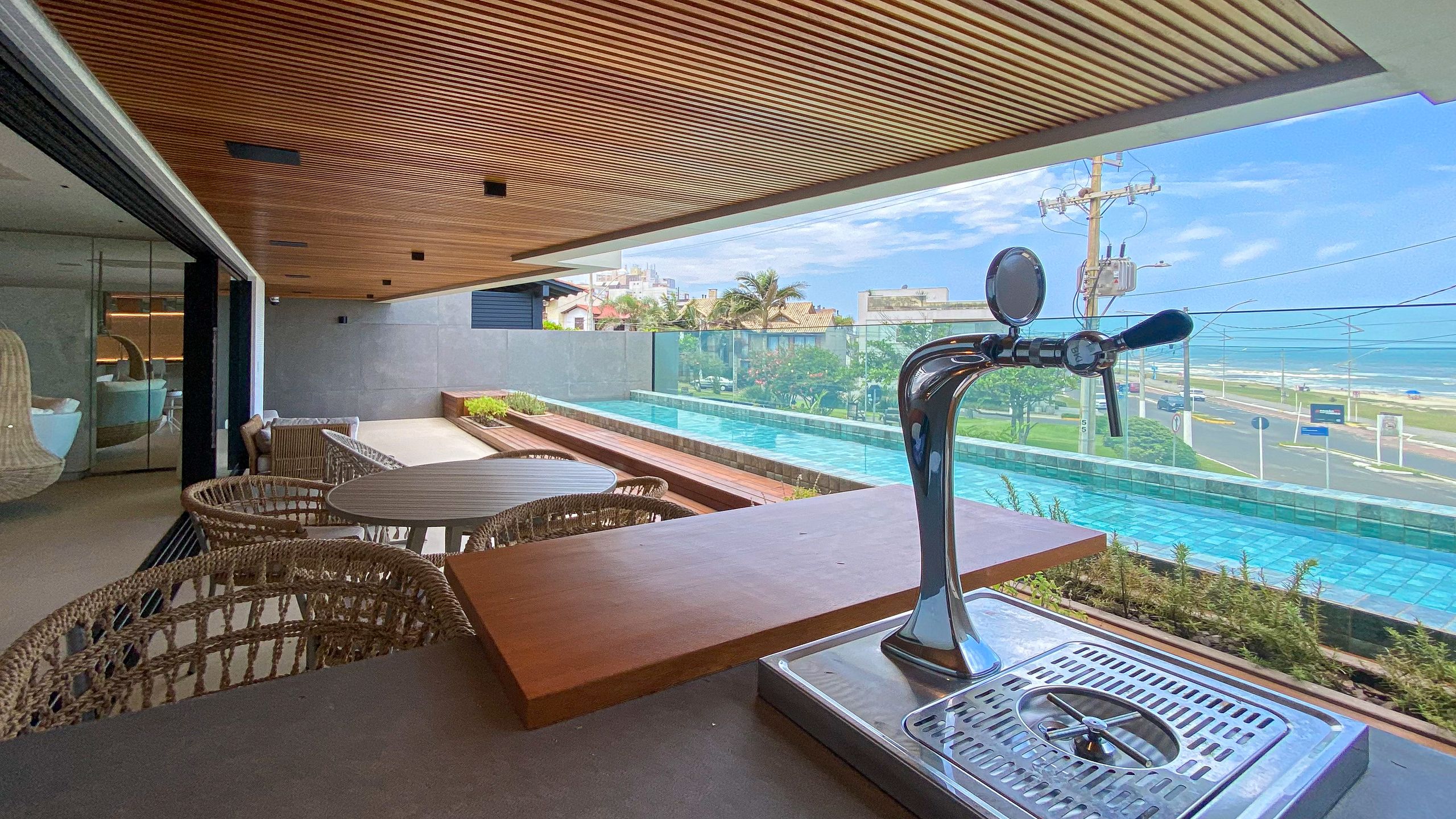 Localizada na Prainha em Torres, com vista única para o mar, conta com sacada com piscina climatizada, piso aquecido, automação Alexa, adega, ar-condicionado cassete, e itens assinados por designers premiados internacionalmente.