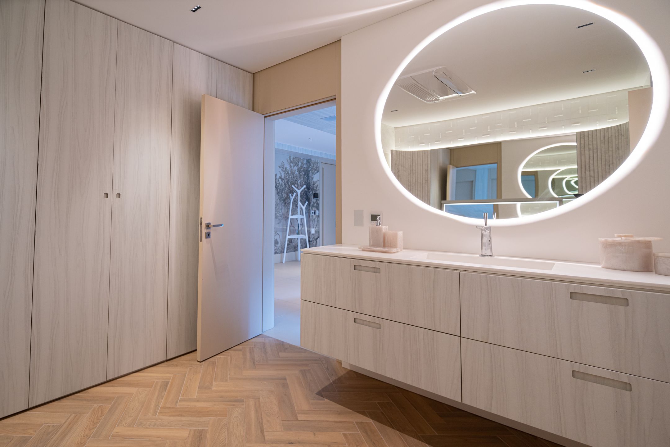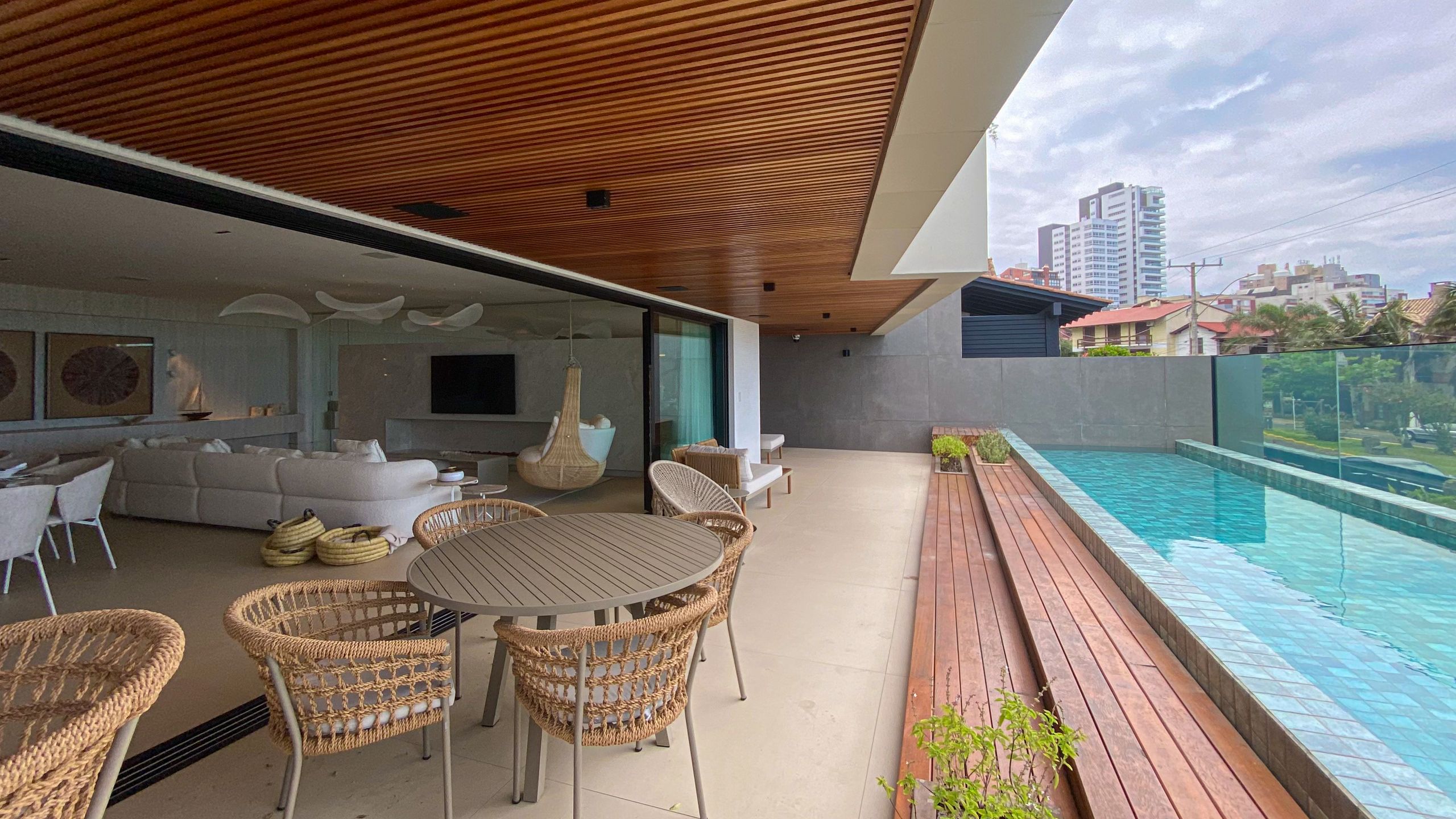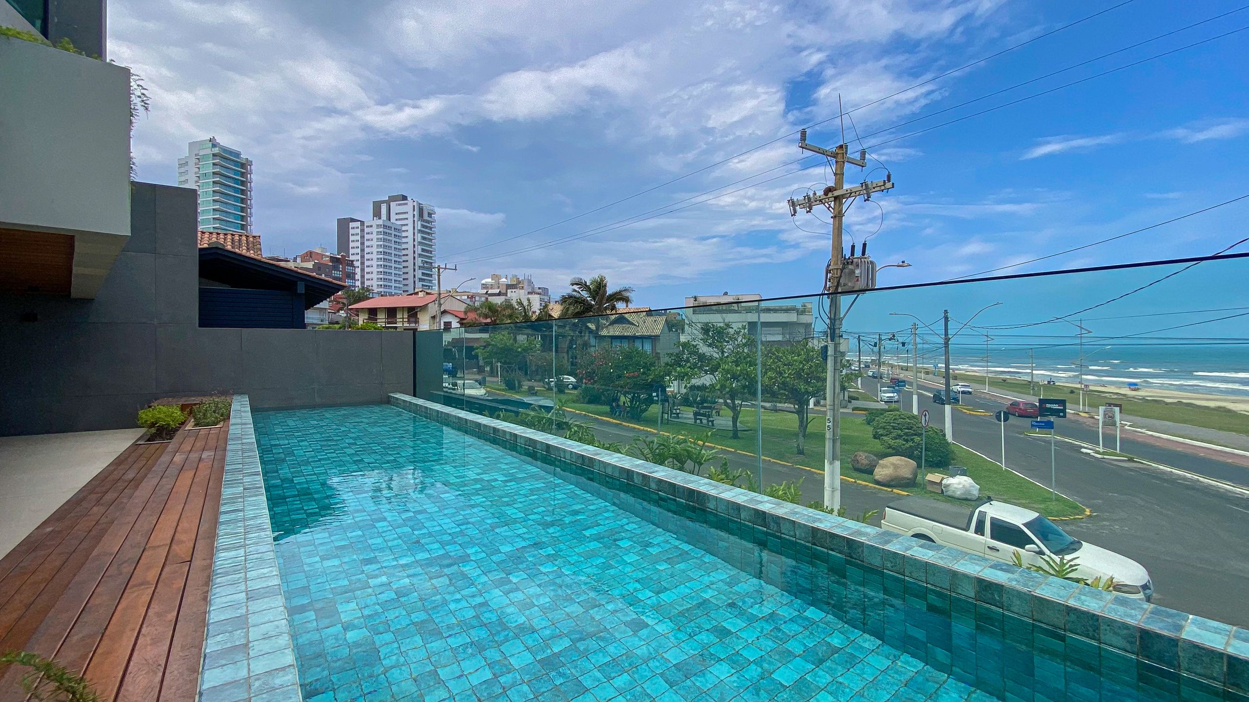 Localizada na Prainha em Torres, com vista única para o mar, conta com sacada com piscina climatizada, piso aquecido, automação Alexa, adega, ar-condicionado cassete, e itens assinados por designers premiados internacionalmente.