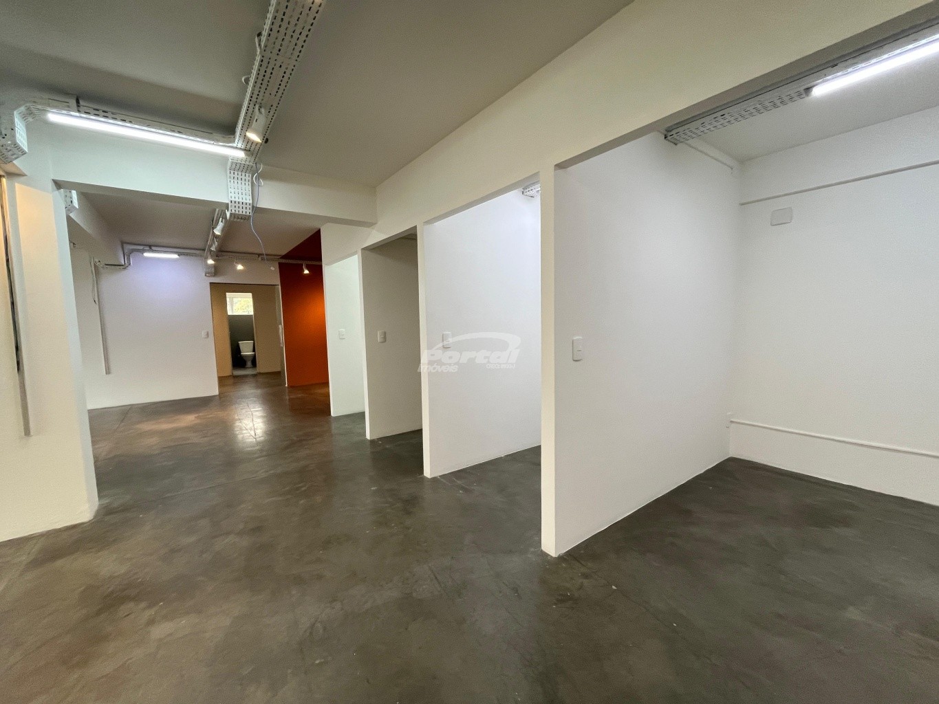 Imóvel com aproximadamente 200m² de área total, distribuídos em: ampla área livre, duas salas privativas e mais 4 salas individuais, banheiro masculino e feminino, copa, depósito, quatro vagas de estacionamento exclusivas e área para carga e descarga facilitada.