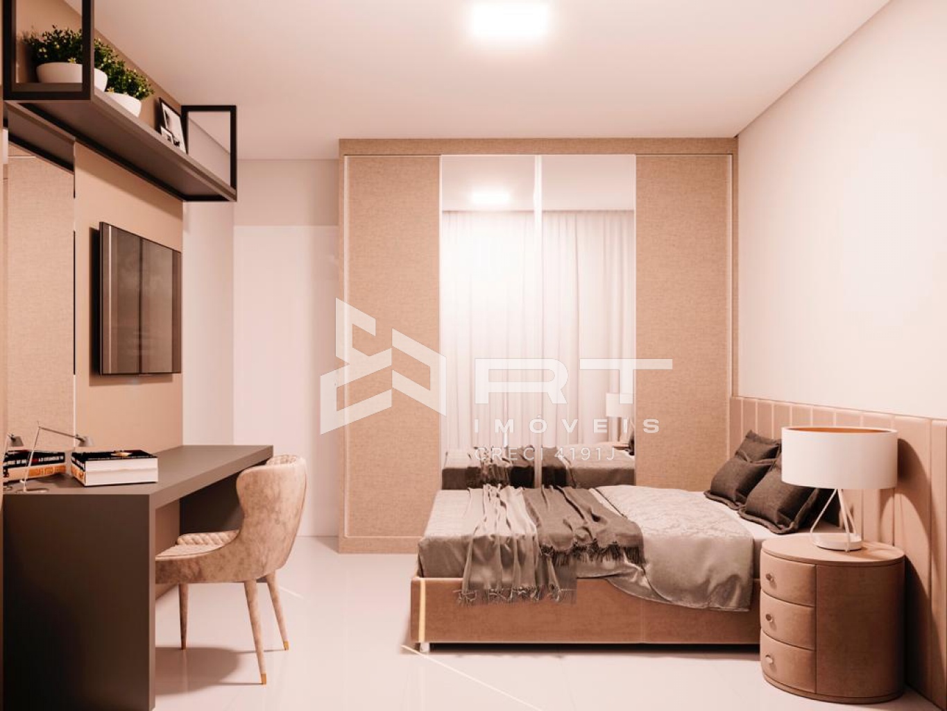 Imóvel com espera para ar condicionado split, abertura em alumínio, porcelanato, teto com rebaixo de gesso, aberturas em alumínio e vidro blindex.